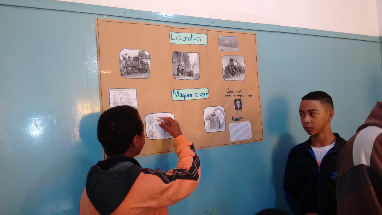 Alunos do 8º ano 14 apresentando o trabalho para o Prof. Valter